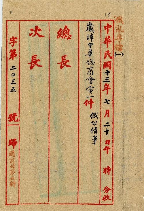 海參崴中華總商會(民國13年07月)。[件名:公債事]。《數位典藏與數位學習聯合目錄》。http://catalog.digitalarchives.tw/item/00/0a/a7/93.html(2025/05/20瀏覽)。