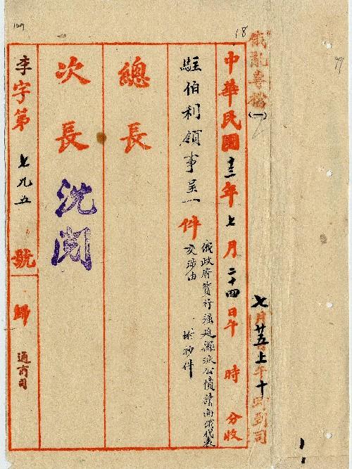 駐伯利領事(民國13年07月)。[件名:俄政府實行迫攤公債請向俄代表交涉由]。《數位典藏與數位學習聯合目錄》。http://catalog.digitalarchives.tw/item/00/0a/a7/96.html(2025/05/20瀏覽)。