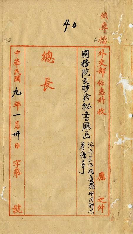 府秘書廳(民國09年01月)。[件名:派兵過江保護旅俄阿穆爾華僑事]。《數位典藏與數位學習聯合目錄》。http://catalog.digitalarchives.tw/item/00/0a/a8/21.html(2025/05/20瀏覽)。