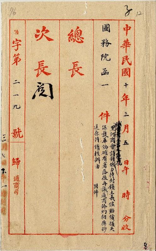 國務院(民國10年03月)。[件名:黑河商會呈請對俄力持封鎖主義俟賠償損失保護華僑確有著落後再議通商條約相應抄送原件請核辦]。《數位典藏與數位學習聯合目錄》。http://catalog.digitalarchives.tw/item/00/0a/a8/40.html(2025/05/20瀏覽)。