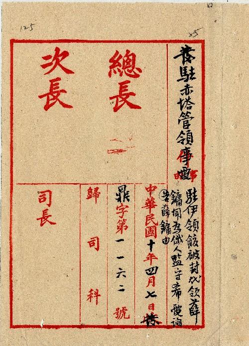 件名:駐伊領館被封代領薛鏞聞為俄人監守希電詢薛鏞