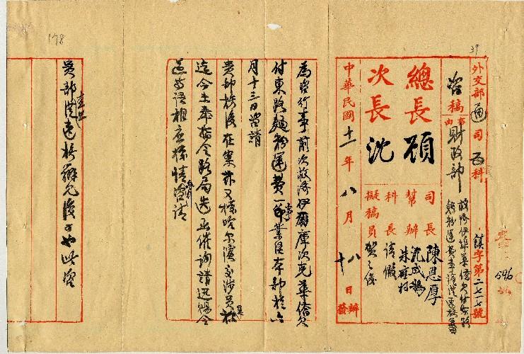 外交部(民國11年08月)。[件名:救濟伊埠華僑欠付東路麵粉運費事請從速核復]。《數位典藏與數位學習聯合目錄》。http://catalog.digitalarchives.tw/item/00/0a/a9/b2.html(2025/05/20瀏覽)。