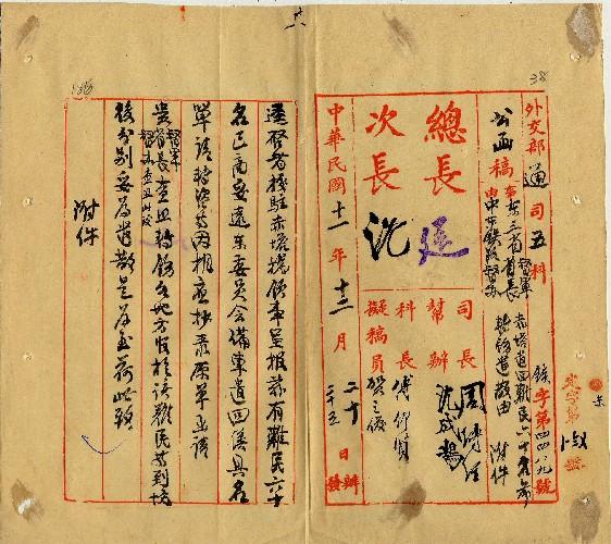 件名:引申前次通牒所宣明之宗旨致使中...