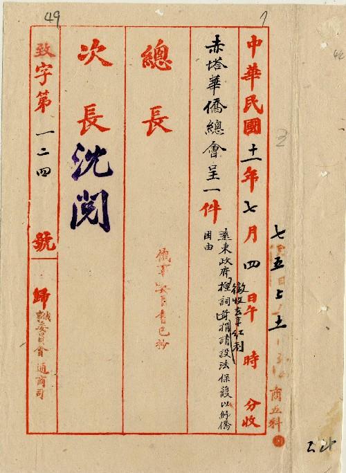 件名:遠東政府徵收去年紅利捐請設法保護以舒僑困