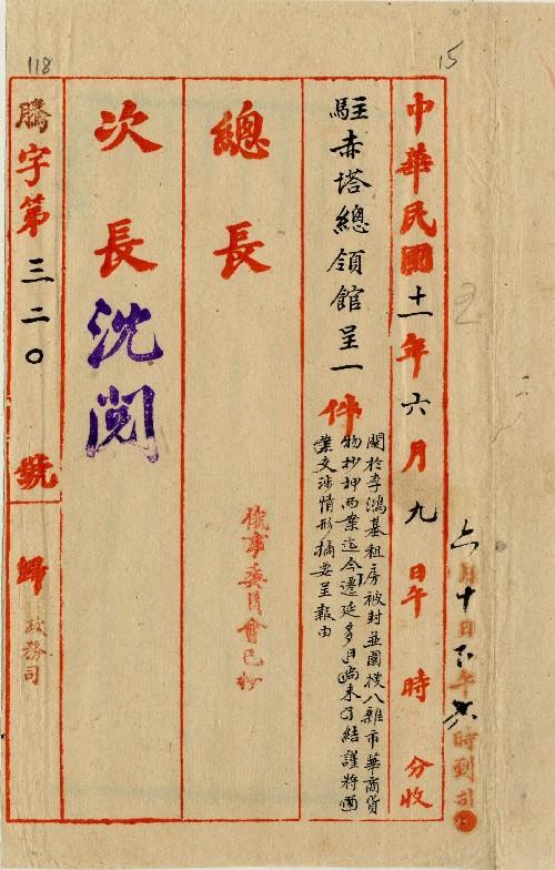 駐赤塔總領館(民國11年05月)。[件名:李鴻基租房被封及圍搜八雜市華商貨物鈔押兩案迄今未結謹將交涉情形摘要呈報]。《數位典藏與數位學習聯合目錄》。http://catalog.digitalarchives.tw/item/00/0a/aa/b7.html(2025/05/20瀏覽)。