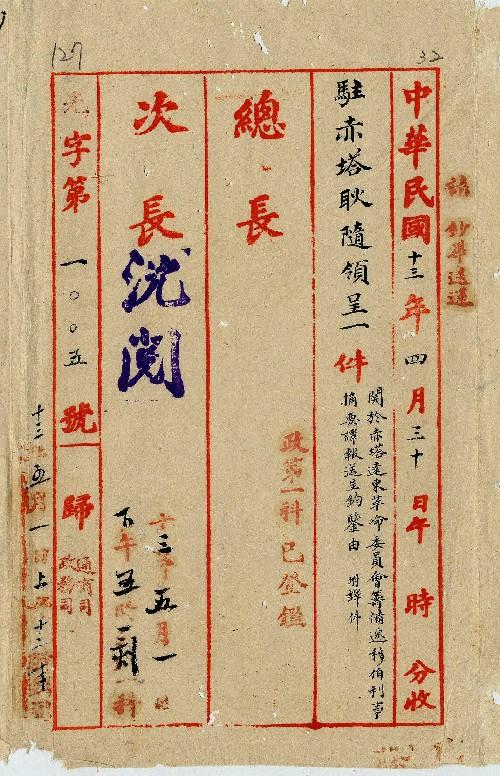 駐赤塔耿隨習領事(民國13年04月)。[件名:關於赤塔遠東革命委員會籌備遷移伯利事]。《數位典藏與數位學習聯合目錄》。http://catalog.digitalarchives.tw/item/00/0a/ab/58.html(2025/05/20瀏覽)。