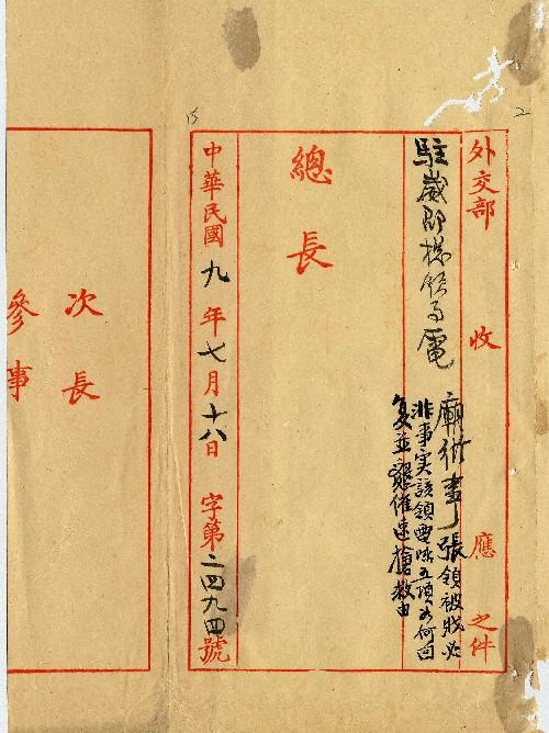 駐崴邵總領事(民國09年07月)。[件名:廟街事張領被戕必非事實該領電陳五項如何回復垂懇催速搶救]。《數位典藏與數位學習聯合目錄》。http://catalog.digitalarchives.tw/item/00/0a/ab/f0.html(2025/05/20瀏覽)。