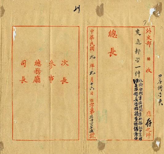 交通部(民國09年09月)。[件名:救濟廟街華僑租用宜興輪船案准吉督咨稱事請查備案由]。《數位典藏與數位學習聯合目錄》。http://catalog.digitalarchives.tw/item/00/0a/ac/69.html(2025/05/20瀏覽)。
