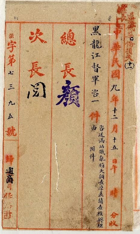 黑龍江督軍(民國09年12月)。[件名:咨送滿站俄亂損失調查原表請查核辦理由]。《數位典藏與數位學習聯合目錄》。http://catalog.digitalarchives.tw/item/00/0a/ae/0b.html(2025/05/20瀏覽)。