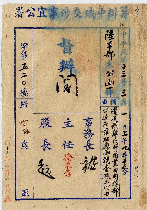 陸軍部(民國13年02月)。[件名:遣送俄難民費用業由內務部咨達在案相應函請查照由]。《數位典藏與數位學習聯合目錄》。http://catalog.digitalarchives.tw/item/00/0a/b0/46.html(2025/05/20瀏覽)。