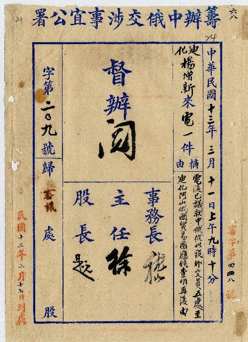 迪化楊增新(民國13年03月)。[件名:復中俄彼此設外交員五處及俄國設貿易圈事]。《數位典藏與數位學習聯合目錄》。http://catalog.digitalarchives.tw/item/00/0a/b0/54.html(2025/05/20瀏覽)。