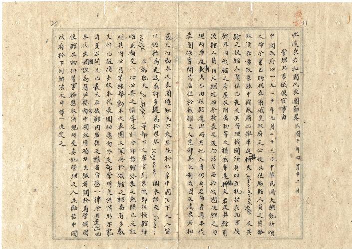 遠東共和國代表團(民國10年04月)。[件名:管理北京俄使館事]。《數位典藏與數位學習聯合目錄》。http://catalog.digitalarchives.tw/item/00/0a/b3/1e.html(2025/05/20瀏覽)。
