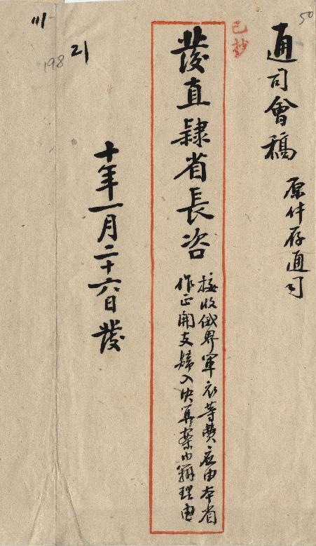 外交部(民國10年01月)。[件名:接收俄界軍衣等費應由本省作正開支歸入決算案內辦理由]。《數位典藏與數位學習聯合目錄》。http://catalog.digitalarchives.tw/item/00/0a/b3/cc.html(2025/05/20瀏覽)。