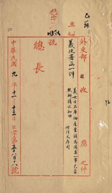 義使署(民國09年11月)。[件名:義女士在庫倫產業請為備案事已否照辦請示知由]。《數位典藏與數位學習聯合目錄》。http://catalog.digitalarchives.tw/item/00/0a/b4/19.html(2025/05/20瀏覽)。