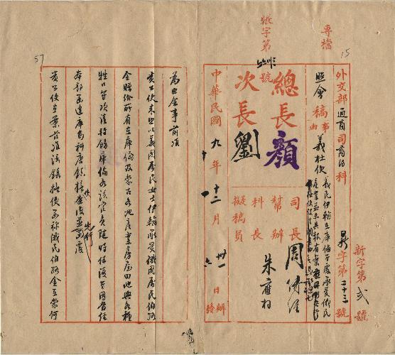 外交部(民國10年01月)。[件名:義民伊翰氏在庫倫等處承受俄民產業并未具報有案無憑承認由]。《數位典藏與數位學習聯合目錄》。http://catalog.digitalarchives.tw/item/00/0a/b4/20.html(2025/05/20瀏覽)。