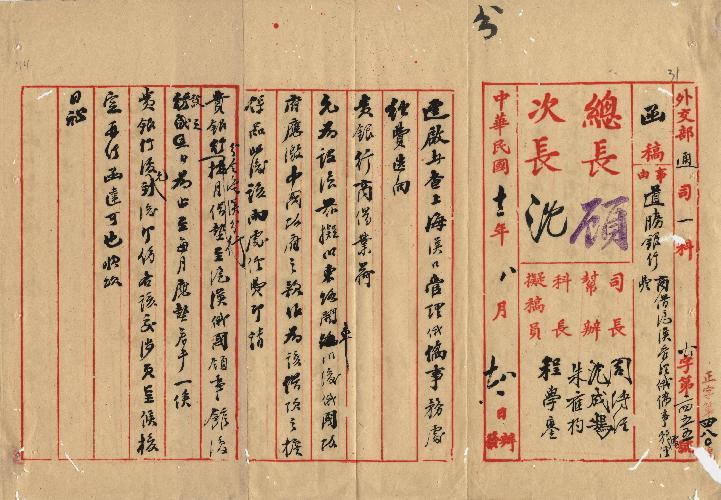 外交部(民國12年08月)。[件名:商借滬漢管理俄僑事務經費事請查照辦理由]。《數位典藏與數位學習聯合目錄》。http://catalog.digitalarchives.tw/item/00/0a/b5/99.html(2025/05/20瀏覽)。