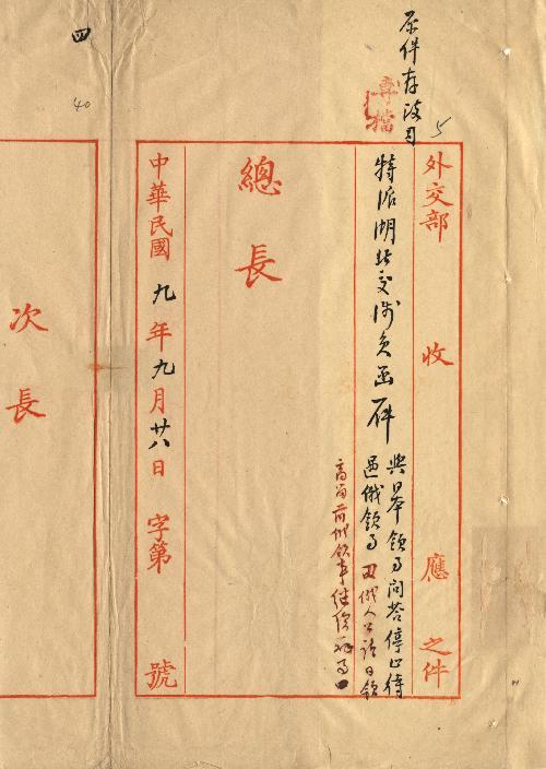 特派湖北交涉員(民國09年09月)。[件名:與日本領事問答停止待遇俄領事俄人公請日領商留前俄領事繼續辦事由]。《數位典藏與數位學習聯合目錄》。http://catalog.digitalarchives.tw/item/00/0a/b5/ce.html(2025/05/20瀏覽)。