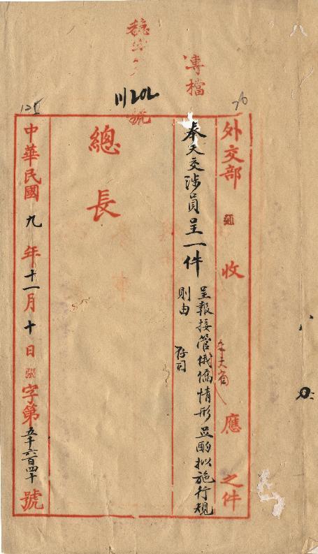奉天交涉員(民國09年11月)。[件名:呈報接管奉天俄僑情形並酌擬施行規則由]。《數位典藏與數位學習聯合目錄》。http://catalog.digitalarchives.tw/item/00/0a/b6/ee.html(2025/05/20瀏覽)。