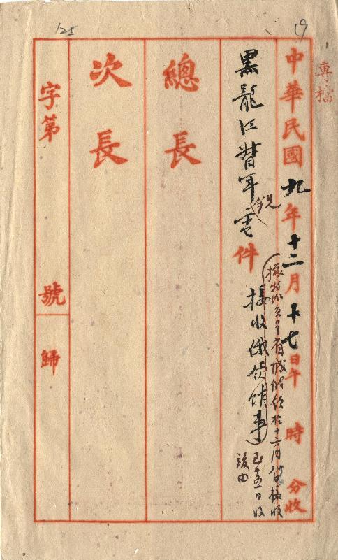 黑龍江督軍(民國09年12月)。[件名:接收俄領館事據特派員呈省城俄館已於十二月十五日接收竣事由]。《數位典藏與數位學習聯合目錄》。http://catalog.digitalarchives.tw/item/00/0a/b7/04.html(2025/05/20瀏覽)。