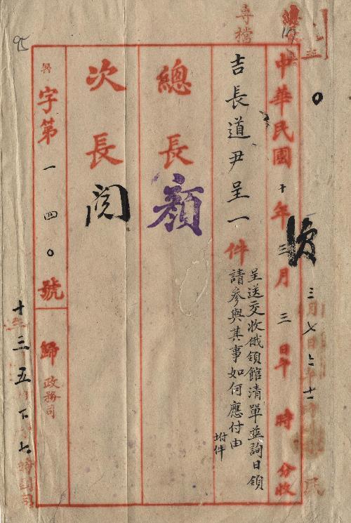 吉長道尹(民國10年02月)。[件名:呈送交收俄領館清單并詢日領請參與其事如何應付由]。《數位典藏與數位學習聯合目錄》。http://catalog.digitalarchives.tw/item/00/0a/b7/18.html(2025/05/20瀏覽)。