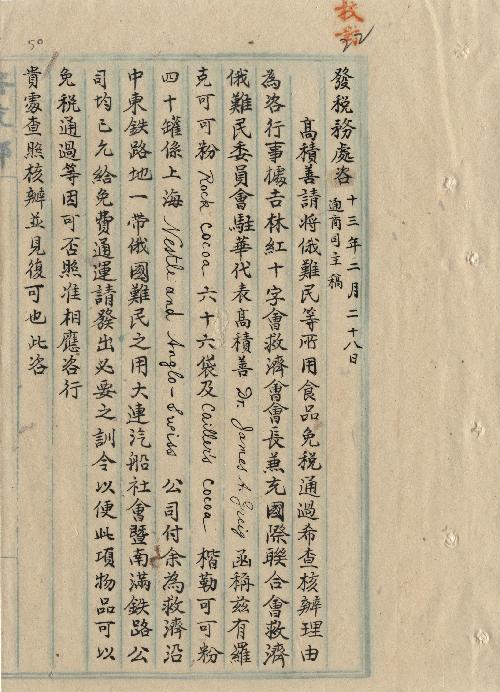 件名:高積善請將俄難民所用食品免稅通過希查核辦理