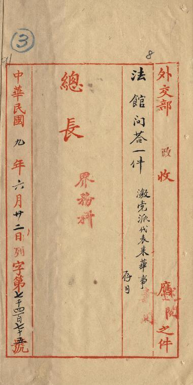 作者不詳(民國09年06月)。[件名:激黨派代表來華事]。《數位典藏與數位學習聯合目錄》。http://catalog.digitalarchives.tw/item/00/0a/ba/e0.html(2025/05/20瀏覽)。
