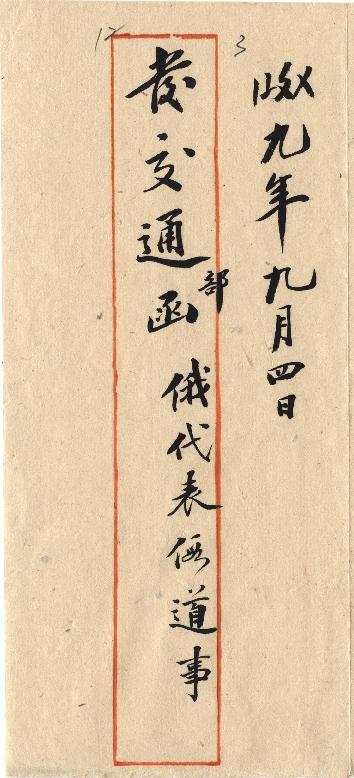 外交部(民國09年09月)。[件名:俄代表假道事]。《數位典藏與數位學習聯合目錄》。http://catalog.digitalarchives.tw/item/00/0a/bb/24.html(2025/05/20瀏覽)。