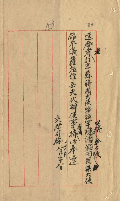交際司(民國14年08月)。[件名:通知喀大使請假回國由]。《數位典藏與數位學習聯合目錄》。http://catalog.digitalarchives.tw/item/00/0a/bb/e1.html(2025/05/20瀏覽)。