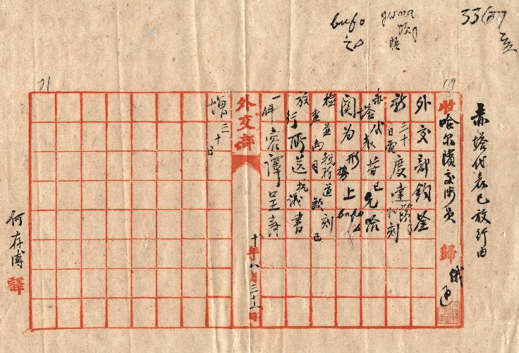 哈爾濱交涉員(民國10年08月)。[件名:赤塔代表已放行事]。《數位典藏與數位學習聯合目錄》。http://catalog.digitalarchives.tw/item/00/0a/bc/61.html(2025/05/20瀏覽)。