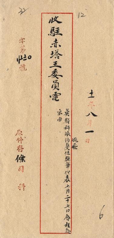 駐赤塔王委員(民國11年08月)。[件名:俄派姚斐駐華代表七月二十七日起程赴京事]。《數位典藏與數位學習聯合目錄》。http://catalog.digitalarchives.tw/item/00/0a/bc/7f.html(2025/05/20瀏覽)。