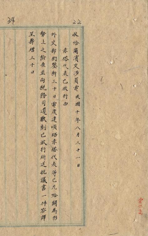 哈爾濱交涉員(民國10年08月)。[件名:赤塔代表已放行事]。《數位典藏與數位學習聯合目錄》。http://catalog.digitalarchives.tw/item/00/0a/bc/cc.html(2025/05/20瀏覽)。