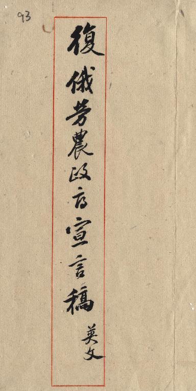 外交部(民國)。[件名:復勞農政府宣言]。《數位典藏與數位學習聯合目錄》。http://catalog.digitalarchives.tw/item/00/0a/bd/35.html(2025/05/20瀏覽)。