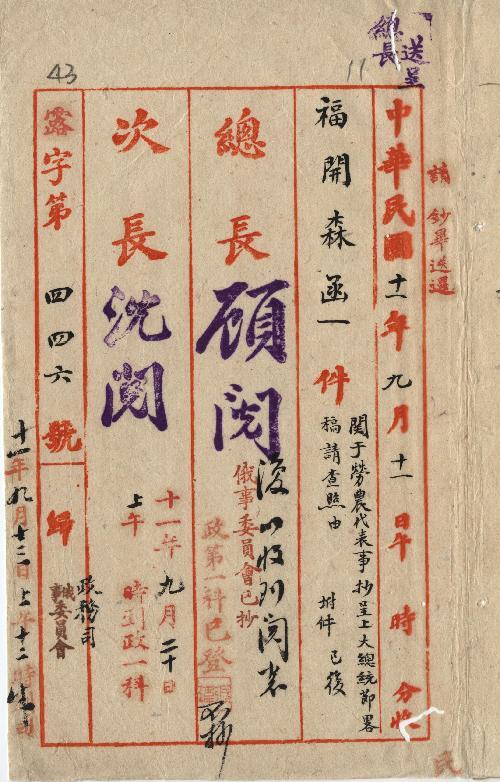 件名:關於勞農代表事抄呈大總統節稿請查照由