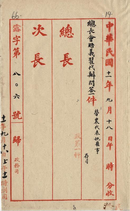 作者不詳(民國11年09月)。[件名:勞農代表姚飛事]。《數位典藏與數位學習聯合目錄》。http://catalog.digitalarchives.tw/item/00/0a/bd/4b.html(2025/05/20瀏覽)。