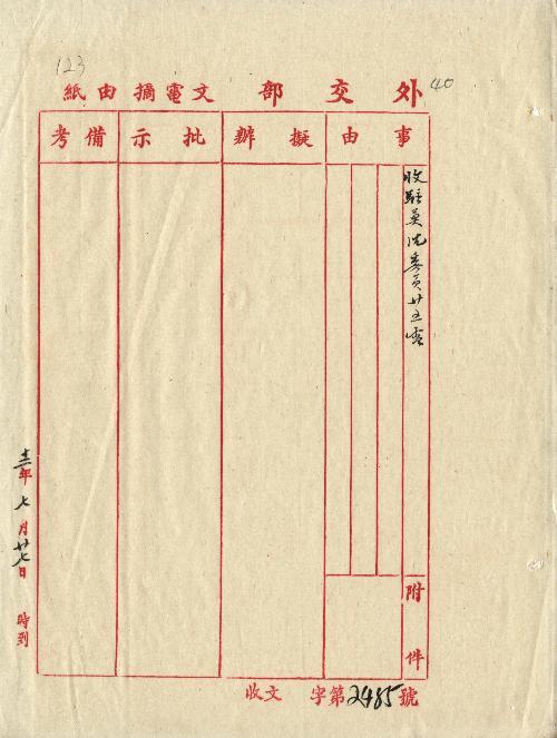 駐莫沈委員(民國12年07月)。[件名:俄政府派外交次長赴京]。《數位典藏與數位學習聯合目錄》。http://catalog.digitalarchives.tw/item/00/0a/bf/16.html(2025/05/20瀏覽)。