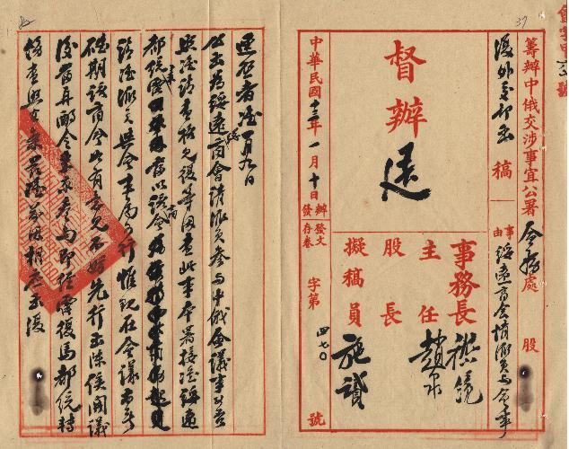 籌辦中俄交涉事宜公署(民國13年01月)。[件名:綏遠商會請派員與會事函復查照由]。《數位典藏與數位學習聯合目錄》。http://catalog.digitalarchives.tw/item/00/0a/bf/93.html(2025/05/20瀏覽)。