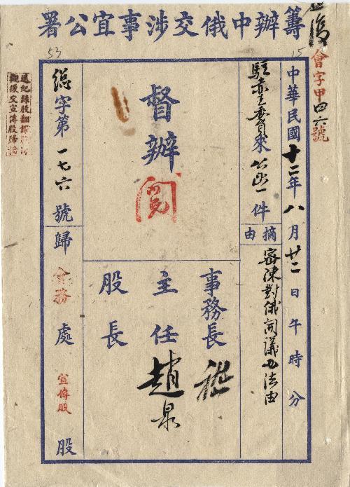 駐赤王委員(民國12年08月)。[件名:密陳對俄開議辦法乞密核由]。《數位典藏與數位學習聯合目錄》。http://catalog.digitalarchives.tw/item/00/0a/c0/2b.html(2025/05/20瀏覽)。