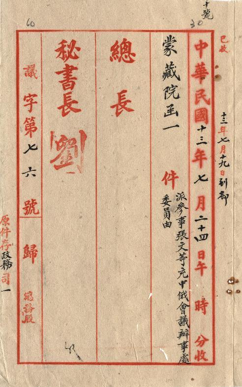 蒙藏院(民國13年07月)。[件名:派參事張文等充委員]。《數位典藏與數位學習聯合目錄》。http://catalog.digitalarchives.tw/item/00/0a/c4/aa.html(2025/05/20瀏覽)。