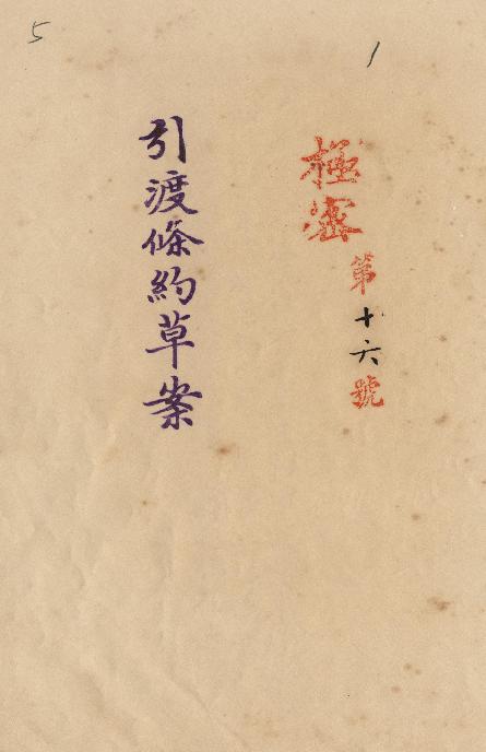 作者不詳(民國)。[件名:引渡條約草案]。《數位典藏與數位學習聯合目錄》。http://catalog.digitalarchives.tw/item/00/0a/c5/87.html(2025/05/20瀏覽)。