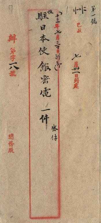 駐日本使館(民國13年07月)。[件名:密件]。《數位典藏與數位學習聯合目錄》。http://catalog.digitalarchives.tw/item/00/0a/c7/79.html(2025/05/20瀏覽)。