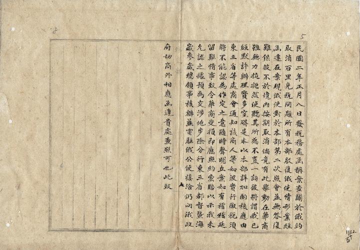 外交部(民國02年01月)。[件名:關於俄約取消百里免稅問題所有本部駁復俄使情形]。《數位典藏與數位學習聯合目錄》。http://catalog.digitalarchives.tw/item/00/0a/c9/0f.html(2025/05/20瀏覽)。