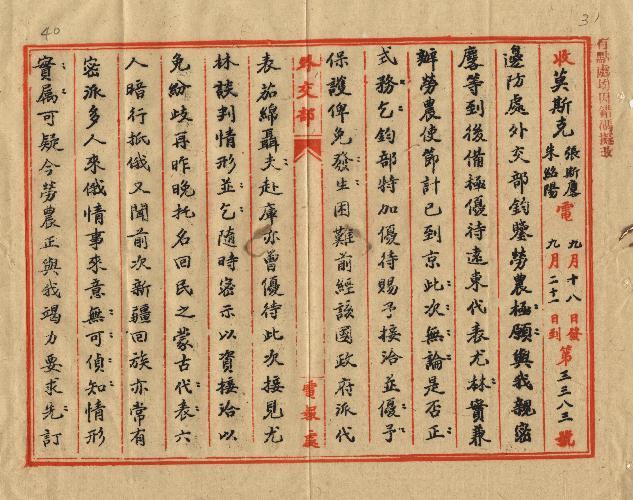 莫斯科張斯?;朱紹陽(民國09年09月)。[件名:接待優林及其代表資格等事]。《數位典藏與數位學習聯合目錄》。http://catalog.digitalarchives.tw/item/00/0a/c9/a3.html(2025/05/20瀏覽)。