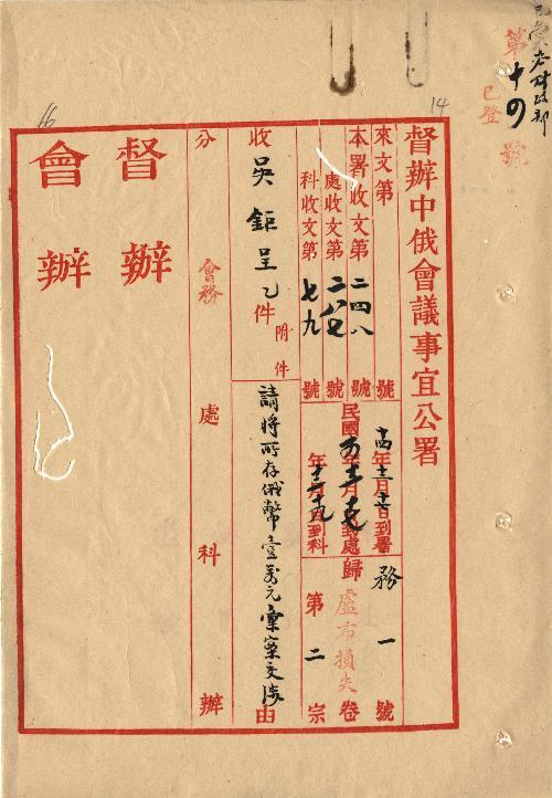 件名:請將所存俄幣壹萬元彙案交涉由