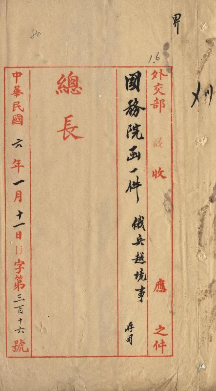 國務院(民國06年01月)。[件名:俄兵越境緝捕逃哈請速與俄使交涉]。《數位典藏與數位學習聯合目錄》。http://catalog.digitalarchives.tw/item/00/0a/ce/65.html(2025/05/20瀏覽)。