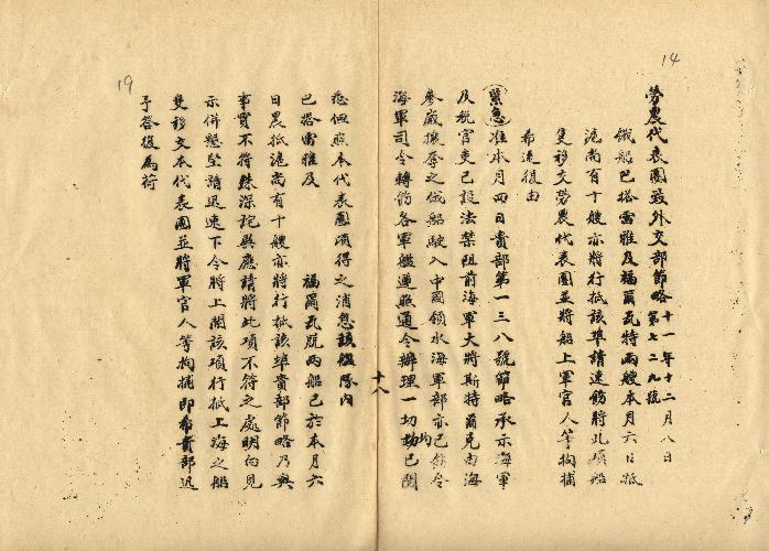 件名:俄船巴達雷雅及福爾瓦特兩艘本月六日抵滬尚有十艘亦將行抵該埠請速飭將此項船隻移交勞農代表團並將船上軍官人等拘捕希速復由