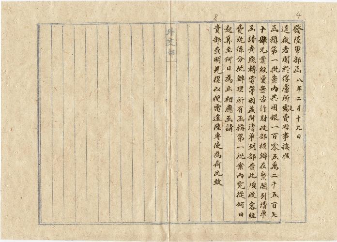 外交部(民國08年02月)。[件名:第一批俘虜費用事]。《數位典藏與數位學習聯合目錄》。http://catalog.digitalarchives.tw/item/00/0b/3f/28.html(2025/05/20瀏覽)。