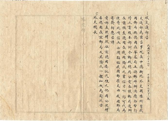 交通部(民國06年03月)。[件名:查德僑書信須黏貼我國郵票由我郵局寄發轉致駐京德使之委託代理轉告在京德郵局及其僑民]。《數位典藏與數位學習聯合目錄》。http://catalog.digitalarchives.tw/item/00/0b/3f/77.html(2025/05/20瀏覽)。