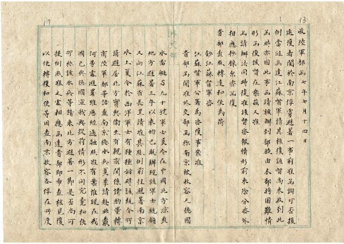 件名:南京俘虜避暑蘇督函陳辦法錄送原咨請查並達和使由