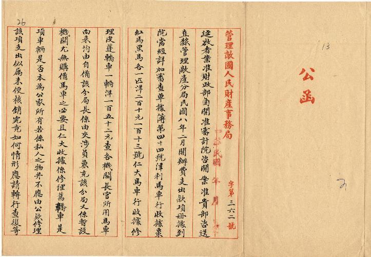 管理敵國人民財產事務局(民國08年07月)。[件名:支出款項冊據當經審查似屬未便核銷究竟如何情形請查照見復由]。《數位典藏與數位學習聯合目錄》。http://catalog.digitalarchives.tw/item/00/0b/53/dd.html(2025/05/20瀏覽)。