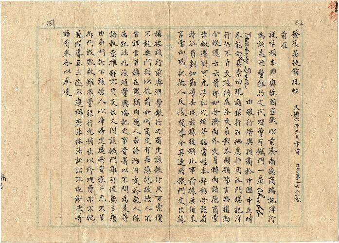 外交部(民國06年09月)。[件名:英商向德商索要鐵門事]。《數位典藏與數位學習聯合目錄》。http://catalog.digitalarchives.tw/item/00/0b/55/52.html(2025/05/20瀏覽)。
